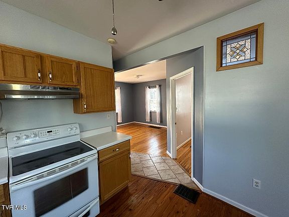A charming covered front porch sets the tone, and inside you'll find sunny rooms with hardwood floors, neutral paint, and great natural light. The easy-flow layout includes a comfortable living room, an eat-in kitchen with wood cabinetry and appliances, and two bedrooms flanking a tidy full bath. Practical updates and low-maintenance features include vinyl siding, a metal roof, and central heat/air. Outside, the level yard offers space for a garden or pets, and the front porch is perfect for morning coffee. Convenient city location just minutes to Downtown Bristol, State Street shops and dining, and commuter routes. Whether you're looking for your first home, wanting to downsize, or eyeing an investment property, 1901 Anderson Street is a smart, move-in-ready choice with room to add your own touches. Buyer/agent to verify all information.