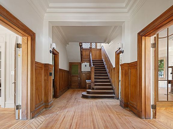 The home has been extensively updated with all new plumbing and electrical systems. Original details include paneled wainscoting throughout, custom radiators with natural stone tops, art deco finishes, original woodworking, stunning stained glass diamond-pattern windows, and fireplaces.