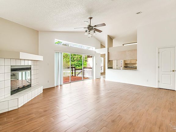 Discover timeless Southern charm in this beautifully designed 4-bedroom, 3-bath home with 2,177 sq ft of living space in the desirable Bay Oaks community. Set among mature shade trees draped in Spanish moss, this property offers a serene estate-like feel just moments from the water. Inside, the home features a spacious split floor plan filled with natural light and architectural detail. The grand living room boasts vaulted ceilings, a cozy fireplace, and sliding glass doors that open to a large raised deck perfect for entertaining or relaxing beneath the trees. French doors lead to a private office or den, adding flexible living options. The bright, inviting kitchen is a true centerpiece, featuring travertine tile flooring, granite countertops, cream shaker cabinetry, a breakfast bar, pantry, and sunny dining nook overlooking the backyard. The primary suite includes deck access, a large walk-in closet, and a well-maintained large vintage-style ensuite bathroom with a soaking tub and abundant light. Additional highlights include generous storage, updated fixtures, and a beautiful blend of classic character and modern comfort. Call for your showing today!