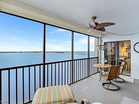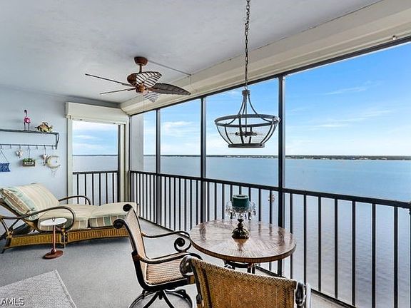 Some of the best views in SWFL, unobstructed views of the Caloosachatee river. Enjoy breathtaking sunsets on your western exposure balcony every evening as you sip your wine and wave to the abundance of boaters going by. This condo has everything you need, charm, style and unique features. The kitchen has custom cabinetry, stainless steel appliances, butchers block, copper sink, and a tin ceiling. Entertain your guests from an elegant, spacious living room with magnificent views though your wall of sliders onto a large screened balcony complete with electric hurricane Kevlar shutters, new floors and master bedroom access. The master bedroom is a great size with more spectacular views, an updated bathroom designed for soaking and pampering and a large walk-in closet. A second bedroom also with a walk in closet and beautiful bathroom provide perfect quest privacy and give the condo ample storage space. The current owner has truly made this a home with many upgrades including, double hung impact windows for spotless cleaning, crown molding, tank less water heater(2021), electrical and plumbing updates and fresh paint. Building has new elevators(2022), painted(2022), all new floors in the building(2022) and roof in 2018. All special assessments have been paid in full by the current owner.