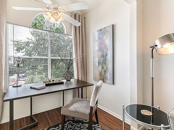 - Exterior features: Automatic Rent Payments Available, Barbecue, Bubbling Creeks and Flowing Fountains, Courtyard, Detached Garages, Flexible Lease, Green Park, Jogging Area, Lavish Landscaping, Online Rent Payment, Preinstalled WiFi with 1st Month Free from Cox, Resident Entertainment Center, Tennis Court(s), Theater, View Type: Parking Lot View, Winding Paths with Bridges