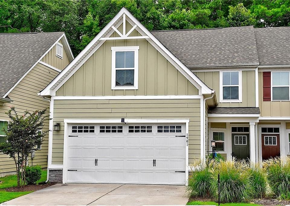 Inviting and open floor plan. Premium lot! Unit backs up to the woods offering a very private back yard. NEVER run out of hot water with the energy efficient tankless water heater. Two car garage. Bryan's Cove offers a host of amenities: dog park so your fur babies can be social too, private beach, dock, clubhouse, pool, firepits, gas grills, trash pickup, playground and exercise room. Stainless steel appliances, granite countertop. You'll love cooking in the kitchen while being able to converse with family and friends. End unit First floor primary suite features double sink vanity, walk in closet, tile shower with glass enclosure. Dual zone with Nest thermostat on each floor. Bryan's Cove is a 12-acre waterfront cove along the Deep Creek of the Elizabeth River. Some photos are virtually staged. 2024-10-01