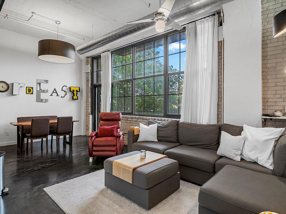 This spectacular end unit condo at the 1901 Lofts has so much to offer! The open floor plan with walls of windows and 12’ ceilings offers an awesome space for entertaining. Other highlights include heated floors throughout both bathrooms and 2nd bedroom, refinished concrete floors, private balcony, in-unit laundry, a separate storage unit and a private side entrance that no other unit offers. Included are custom floor to ceiling drapery, a California closet system, nest thermostat and Phillip hue lights. Roof is only 1 year old! Plenty of off street parking and 4 guest spots on the NE corner of the parking lot. This unit's designated parking spot is conveniently right across from the front door entrance. Easy access to downtown, the Quarry, U of M campus, breweries and only steps from Up Coffee!
