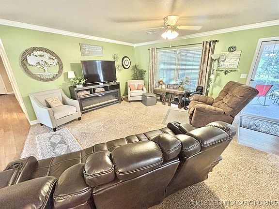 This spacious home boasts three generous bedrooms, each with large walk-in closets, along with two full bathrooms and a convenient half bath located in the laundry room. A versatile multipurpose room serves as a craft space and includes a secure 4 x 9 safe room, perfect for added safety.