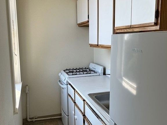 This large top floor studio features a small gas stove, larger closet, new carpets, and vaulted ceiling. Lots of east facing windows.
