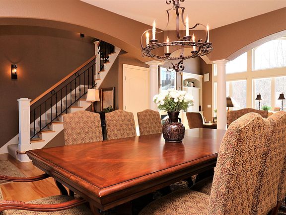 Exquisite French Cottage style in the Riverview subdivision of Eagle Valley on Wausaus Northeast Side. This home is set on nearly an acre lot along the banks of the Jim Moore Creek and adjacent to the Sylvan Hill forest, where you will feel one with the abounding nature sights and sounds. As you step into the grand entry, you will be greeted by the open concept dining and living areas with birch floors, the beautiful staircase and balcony with custom iron railing. Natural light floods these spaces from its southern exposure with energy efficient Weathersheild windows. The 2 story open great room feels cozy with the inviting fireplace and entertainment wall. Enjoy preparing meals in the open cooks-kitchen with custom cherry cabinetry, with all appliances, including new GE Dutch door refrigerator in black slate, Bosch dishwasher, smooth cook surface is plumbed for the potential of gas. Laundry room with Speed Queen washer and dryer plus utility sink. The primary bedroom suite is secluded on the main level, dual closet spaces lead to the recently remodeled spa style bath retreat! Soaking tub, glass & tile shower, dual vanities, radiant heated floors complete the experience. The upper level features a balcony that overlooks the 2 story great room and 3 large bedrooms with great views and closet spaces. A full bath serves this level. The day-light, exposed lower level has 9 foot ceilings and provides plenty of space for all the activities, family room plumbed for a gas fireplace option and offers wet bar/kitchenette potential! Glass french doors lead to a 20x20 bonus room which makes a great studio, fitness and play area. There is also a 5th bedroom and full bath to complete the flexible use of the lower level. Stately turn around driveway, 3 car attached garage is insulated and finished, plumbed for option to add heater. This home was mindfully constructed by Will Keener Construction. You will have peace of mind knowing the roof was replaced in late 2019 with Owens Corning 30-50 year shingles. Trane 2 zone gas furnace installed in 2017, air exchange system, 50 gallon gas hot water heater. All systems of this home have been meticulously maintained. Home security system, built-in sound system serve main living areas and outside. The park-like yard will stay lush all season with the in-ground sprinkler system. The mature trees and plantings provide color and beauty all seasons. Proximity to the Sylvan Hill park, provides miles of nature hikes year round, including snow shoeing, cross country skiing and tubing. Near the beautiful Tribute nine hole golf course. This home is located in the Eagle Valley subdivision which has covenants (see attached documents) and HOA membership of $100/year.
