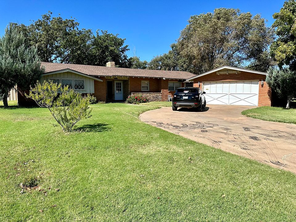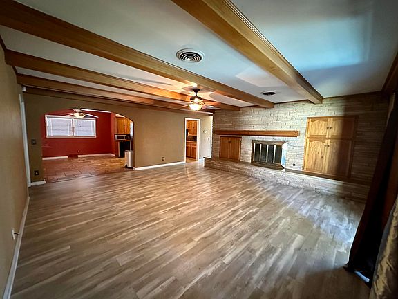 This one is THE ONE! Beautiful 3-bedroom, 2-bathroom home with a double car garage and approximately 2,400 square feet of living space, not including the cute sunroom addition! The living room has a very pretty wood burning stone wall fireplace, beamed ceiling and a unique archway entering into the dining/kitchen area which has beautiful travertine tile flooring, granite countertops, glass tile backsplash, a double oven, 5-burner gas stove, and a beverage center. The same stone is also used on the exterior front porch entry way and creating a beautiful, raised flower bed. There is a second large family room with custom built-in bookcases, that you enter into through marble tile ledge half walls on each side. Gorgeous and unique! Renovations are currently in progress including exterior paint and LVP waterproof flooring being installed. You've got to see this one!