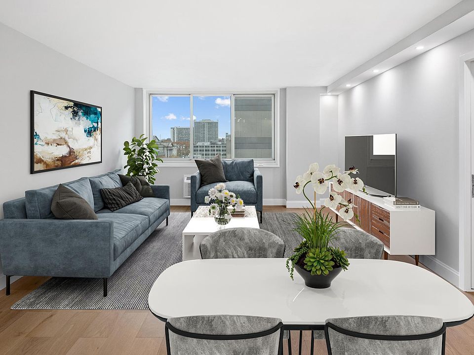 Welcome to this spacious, bright and renovated 2 bedroom, 2 bath unit, with a split bedroom floor plan, on the 7th floor of the Kennedy House. This bright and airy co-op unit has 1165.64 square feet of living space, and features beautiful wet proof engineered wood floors, recessed lighting, gorgeous white shaker kitchen cabinets, a huge walk-in pantry, full size washer and dryer in a huge master bathroom , all brand new appliances including an oven with an air fryer along with quartz counter tops and backsplash. It's an amazing unit with an abundant amount of closet space. The unit is turnkey so you can enjoy the building amenities, such as an amazing rooftop pool, community room, bike room, laundry facilities, library with computers and a printer, fitness center, concierge, 24 hour security, on site management, on-site parking, hospitality suites and a free storage bin located within the building. When you are ready to go into town, the 17 And 33 bus stops right on the corner of 19th and JFK BLVD or go a few more blocks to Amtrak 30th Street Station. Fabulous restaurants, shops, and museums are right outside your door! The monthly fee includes almost EVERYTHING: All Utilities including electric, heat, air conditioning, water, basic cable, real estate taxes, and use of both the rooftop pool and the fitness center. There is a one-time administrative charge of twenty dollars per sq. ft. This is a Co-op building and all applicants have to be approved by the board. The board requires twenty-five percent down when acquiring a mortgage. Subletting is not allowed. And unfortunately, no dogs are allowed.