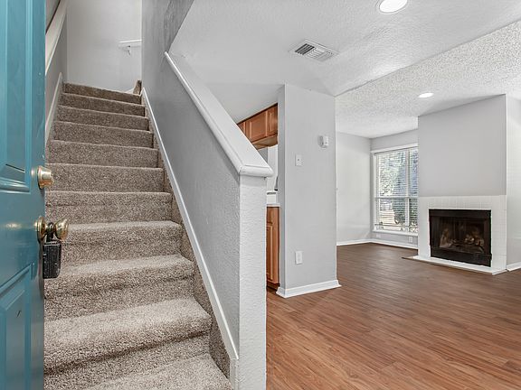 Studio style 1 Bedroom, 1 Bath apartment with high ceilings and private balcony looking out to a park. Engineered wood flooring in the living room and breakfast nook. Wood-burning fireplace in the living room. New quartz counter tops in kitchen and bath and new carpet on the stairs and in bedroom. Appliances include refrigerator, electric range, vented hood, dishwasher, and new stack washer & dryer. Central heating and AC. Tenant only pays electric.