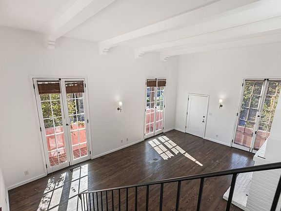 This two-bedroom, two-bathroom home is a rare gem, featuring soaring 20-foot ceilings with exposed wood beams, rich hardwood floors, and luminous living spaces flooded with natural light.