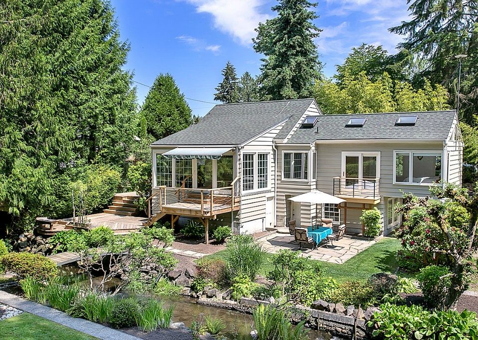 Adorable Cape Cod-Cottage, on Thornton Creek, nearly 1/2 acre - 19000 sqft lot. Wrought gated entry. House was designed & situated to enjoy the gorgeous, professionally lanscaped front & back yards, 2 decks, patio. Back yard has 3 tiered sections of entertainment fun! 2 bdrms, 2 baths, family room, spacious living rm, gas fireplc, sauna, vaulted ceilings, sky lights. Easy 2nd kitcn down. Updtd plumb, paint, elec, chimney & roof. Gas heat, Pella windows, lower level has shop or possble 3rd bdrm