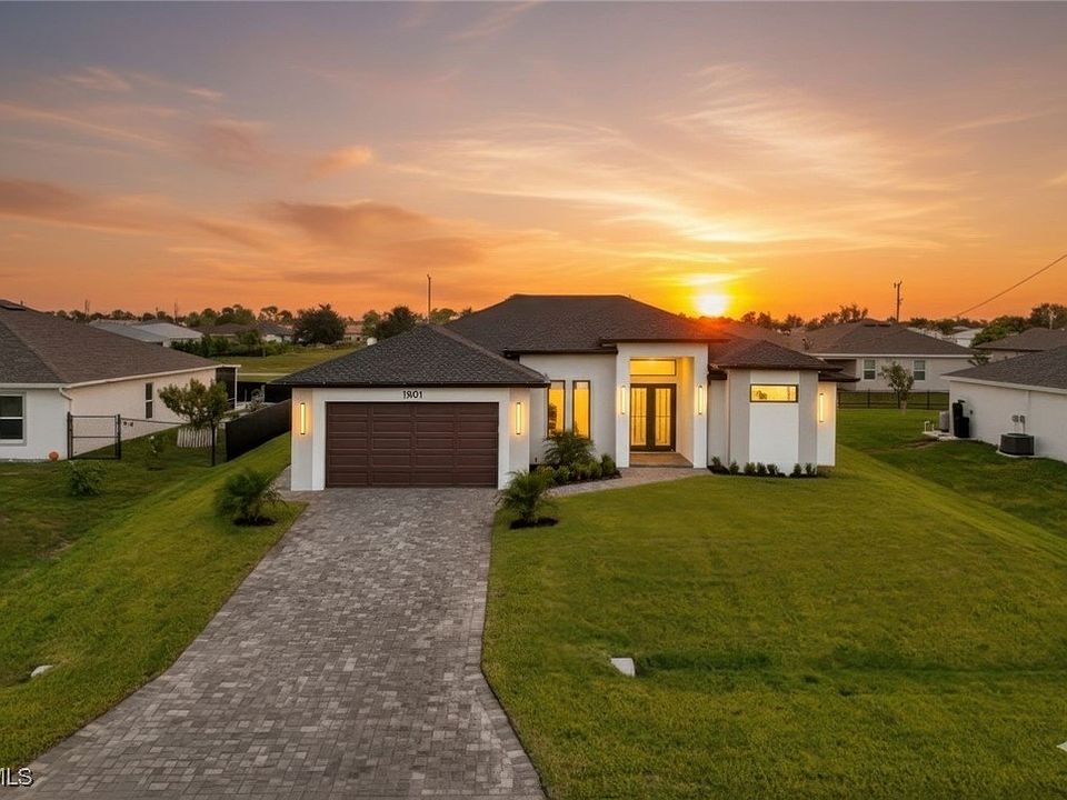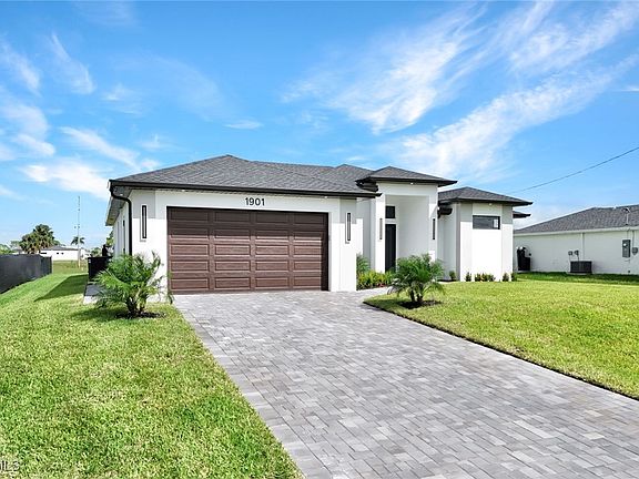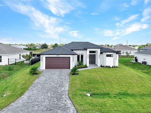 Beautiful New Construction Home in Cape Coral! This residence features 3 bedrooms, 3 bathrooms, plus a den, with a double car garage and a stylish modern outdoor kitchen perfect for entertaining. Inside, enjoy a spacious master bedroom with walk-in closets, a sleek contemporary design, and plenty of natural lighting throughout. The kitchen is highlighted with quartz countertops, while the bathrooms showcase floating cabinets for a modern touch. The home is also equipped with surround sound inside and on the lanai, creating the ideal atmosphere for relaxing or entertaining. With plenty of space to build your dream pool, this property offers both style and functionality in one of Cape Coral’s fast-growing areas.