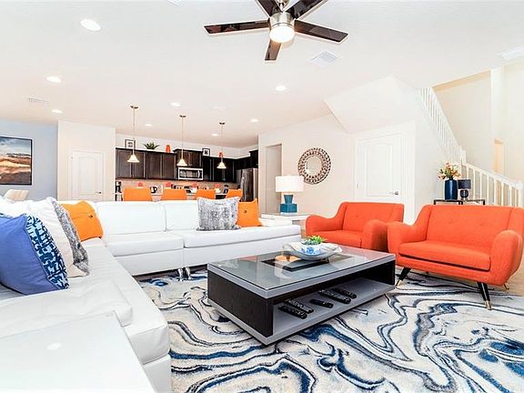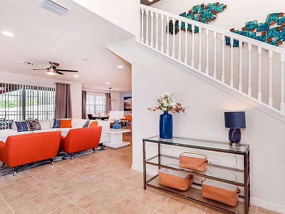 Your Dream Vacation Home in Sunny Florida! Discover this elegant, income-generating 5-bedroom, 4-bath villa located in the sought-after Windsor at West Side Resort, just minutes from world-famous attractions! This fully furnished, beautifully decorated pool and spa villa is zoned for short-term rental and has an excellent performance record — generating over $71,000 in 2021/2022 and $63,000 in 2023 (financials available upon written offer). Spanning 2,932 sq. ft., this home is thoughtfully designed for both family getaways and profitable vacation rentals. The modern kitchen seamlessly connects to the spacious living and dining area, with sliding doors that open to a covered lanai and screened, heated pool and spa — perfect for indoor-outdoor entertaining. The main floor features a guest suite and an additional guest bedroom for convenient access. Upstairs, you’ll find the primary suite, a third en-suite, two more guest rooms, a fourth full bath, and an oversized loft area, accommodating up to 14 guests comfortably. Enjoy endless fun in the recreation room, complete with arcade games and stylish décor. Windsor at West Side offers resort-style amenities including a clubhouse with fitness center, resort pool with lazy river and waterslides, volleyball and tennis courts, and a kids’ play zone — all just a short walk from the Oasis Clubhouse and Water Park. The HOA covers lawn maintenance, internet, cable, and 24-hour gated security — making ownership truly turnkey and worry-free.