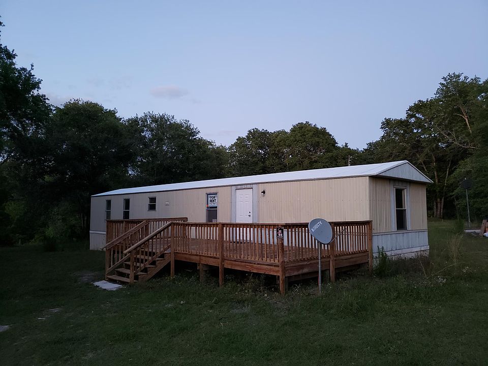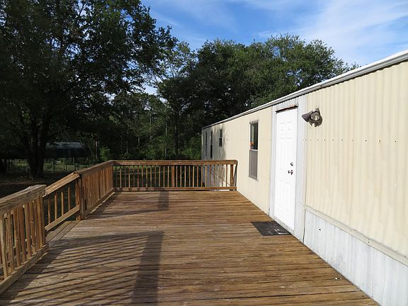 Clean, well maintained 2 Bedroom 2 Bath single-wide manufactured home with large sun deck on 2 acres. Split floor plan. Good size kitchen with lots of counter & cabinets. Large living room. Inside laundry hook-ups in back hall. Master bath has garden tub & separate shower. 2nd full bath has regular tub/shower. New wall to wall carpet throughout. Tile or linoleum in kitchen, halls & baths. Lockable storage shed. Additional concrete pad. Deep well & septic. Tenant pays for electricity. County trash & recycling pickup included. Refrigerator & range will be provided. Hook-ups are there for your own washer & dryer. Located on a short run of county maintained dirt road off of Blue Jay Dr. which is paved. Note: The home to the rear is on the next street and does not have a right of way through this parcel. Owner is considering fencing the rear property line.