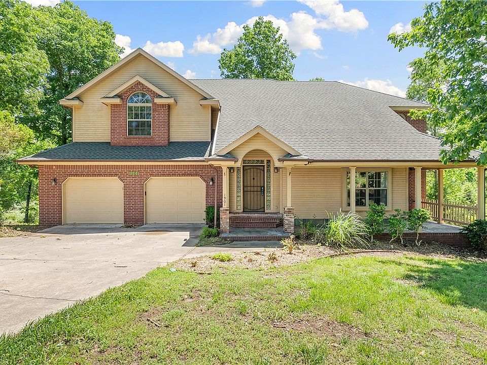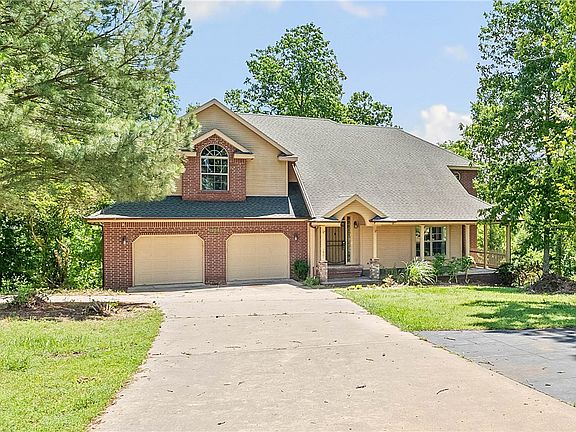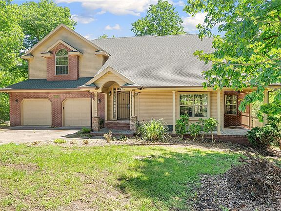 This home has the best of all worlds! Nestled on 2.73 private acres with easy access to everything you could possibly need (5 miles to I-49, 2 miles to Hwy 71, and 2.5 miles to Beaver Lake). Enjoy the serene, natural setting of the outdoors on any of the 3 covered patios or covered front porch. With pristine wood floors, a functional kitchen with a dining area, and large laundry room with sink, the home has both an inviting warmth and functionality. The primary suite is filled with natural light and has a huge walk in shower and jacuzzi tub and an enclosed patio. Come see the massive garage! With over 30 feet of length, save on boat dock fees and store your boat or park several cars. If climbing stairs is an issue for anyone in the family, a stair lift is installed to safely take you to the second floor. This charming home is conveniently located just minutes from the Monte Ne boat ramp, Horseshoe Bend Marina, Downtown Rogers, the Railyard, shops and the Entertainment District.