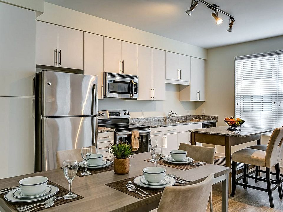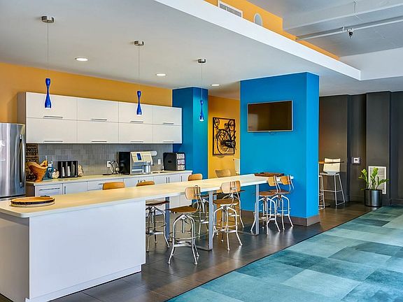 Rooftop fitness centerResident loungeGranite countertopsCity views