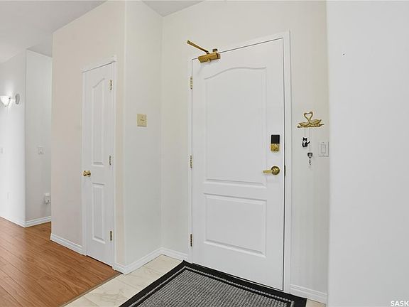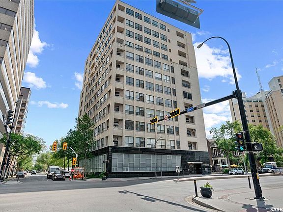 The Motherwell Building – Modern Downtown Condo Living. Welcome to The Motherwell Building, a true staple of Regina’s skyline. This beautifully updated 2-bedroom, 2-bathroom condo offers 1,094 sq. ft. of contemporary living space in one of downtown’s most recognizable and sought-after buildings. Located on the 2nd floor, this unit boasts prime elevator proximity—perfect for easy access with groceries or luggage. Step inside to find a bright, open-concept layout featuring modern finishes throughout. The kitchen impresses with its full stainless steel appliance package, pendant and pot lighting, laminate flooring, and a convenient eat-up nook, ideal for casual dining or entertaining. Enjoy the north-facing balcony with stunning views of Regina’s skyline, providing a peaceful retreat right in the heart of the city. Down the hall, the first bedroom offers a large north-facing window, filling the room with exceptional natural light. The primary suite features even more space, a huge walk-through closet, and a 4-piece en-suite bathroom with modern upgrades. A second full 4-piece bathroom and a dedicated laundry area with extra storage complete this well-designed layout. Additional highlights include quality flooring throughout, modern design details, and heated, covered parking located in the lower level parkade. Experience downtown living at its finest—modern comfort, unbeatable location, and timeless architecture. Come see for yourself what The Motherwell Building has to offer.