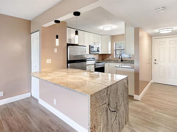 COMPLETELY REMODELED 2 bedroom / 2 bathroom, first floor unit condo in the highly desirable community of Venetian Terrace. Great opportunity for first time home buyers and small families. ALL AGES WELCOME! Kitchen has stainless steel appliances and opens into the dining and living space. Enjoy coffee or tea in the enclosed balcony with canal views. Great space for entertaining family and guests. Both bathrooms have stand up showers and have been remodeled. The unit has been freshly painted and has tiles throughout. Seller will consider owner financing.