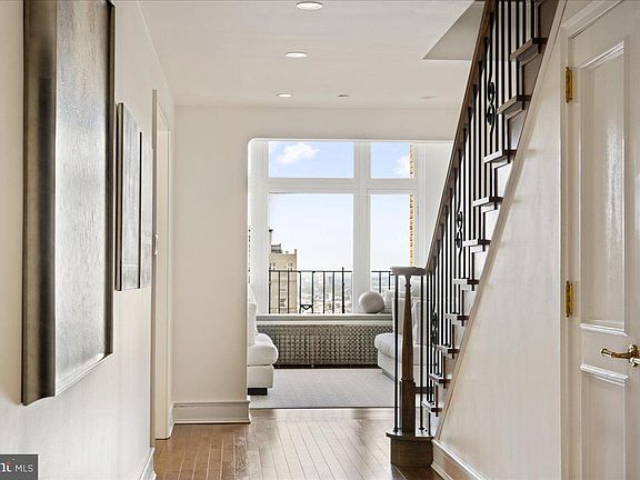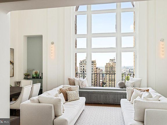 Overlooking Rittenhouse Square, this one-of-a kind, bi-level, 3420 sq ft Penthouse has been fully renovated, with 4 bedrooms and 4.5 bathrooms. This home is completely reimagined by award-winning architects, Kass & Associates, Spogue Kitchens and Baths, and construction by Weaver Luxury Living. The grand living room boasts an 18-foot beamed ceiling and a majestic arched window overlooking the park. A focal point for the room is the original architectural fireplace with marble surround. Double arched doors on each side of the living room open onto charming balconies with spectacular views of the park and beyond. A large archway from the living room leads to an elegant Chef's kitchen with Wolf, Subzero and Cove appliances, custom cabinets made by Artcraft, leathered granite countertops and backsplash. An oversized island anchors the space, providing ample room for meal preparation and casual dining. The spacious kitchen features an additional sitting area, also perfect for a dining table. The primary suite conveniently located on the first floor includes a spa-like ensuite bath with floor-to-ceiling marble, a soaking tub and a step-in shower. Adjoining the bath is a large walk-in closet with custom cabinets and a well-appointed laundry area with an entire wall of built in cabinetry. Completing the first floor is a marble powder room. On the second level, there are three generous sized bedrooms, each with an ensuite floor-to-ceiling marble bathroom and walk-in closet. This level also includes a second laundry and an overlook of the great room with stunning views through the signature window. 19D & 20D represents the height of luxury and modern living, with solid oak floors, fire sprinklers throughout, multi-zoned HVAC, and AcoustiBlok soundproofing. A ground floor deeded parking space is available for purchase at 2020 Walnut Street. The Rittenhouse Plaza is a pre-war building, overlooking Rittenhouse Square where one is amid the latest trending restaurants, casual eateries, upscale shopping, museums, and so much more. Residents enjoy a 24-hour concierge, a lush courtyard garden, and all of the fabulous perks and conveniences of its Rittenhouse Square location. The building is maintained beautifully, and the staff is very professional and on hand. It’s an ideal place to call home! The monthly co-op fee includes real estate taxes, Fios cable, internet, heat, water, sewer, and building maintenance.