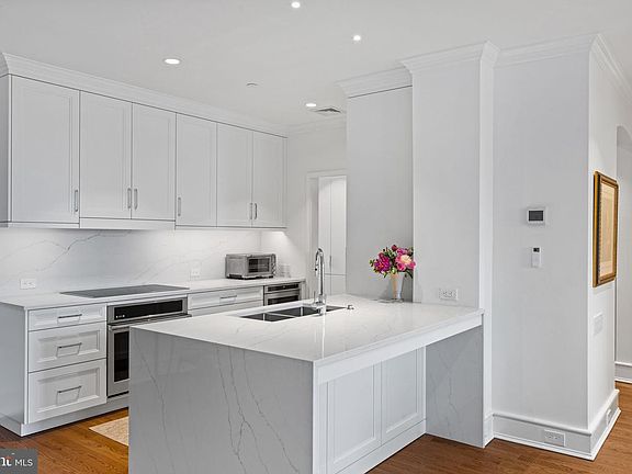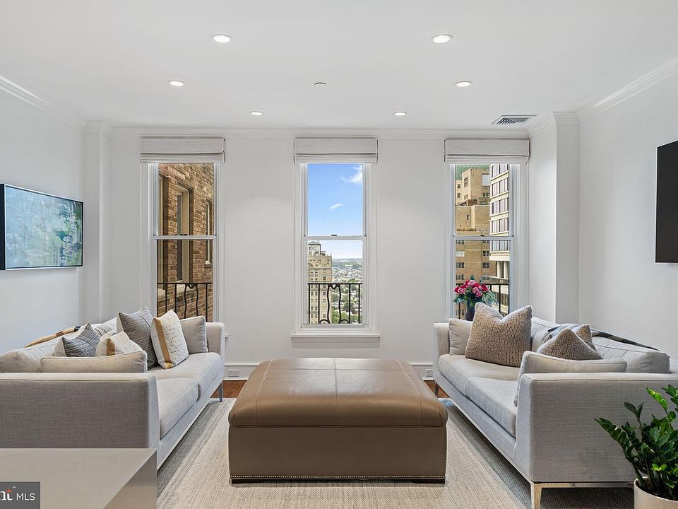 Beautifully Renovated 2BD/2BA at The Rittenhouse Plaza | Approx. 1,545 Sq Ft | Overlooking Rittenhouse Square. Fully renovated in 2023 by Weaver Luxury Living with architectural design by Kass & Associates. This elegant 2-bedroom, 2-bath residence at The Rittenhouse Plaza offers approx. 1,545 sq ft of sophisticated living space with lofty views of Rittenhouse Square. The spacious living room is filled with natural light and flows seamlessly into the open kitchen featuring custom Artcraft cabinetry by Spogue Kitchens, quartz countertops/backsplash, built-in paneled refrigerator, high-end appliances, and exterior-vented range hood. The primary suite includes a walk-in closet and a luxurious en-suite bath with high-end finishes. The second bedroom also features a walk-in closet, custom wall-mounted bookshelves, and easy access to the second full marble tiled bathroom. A newly added hallway storage closet provides generous additional space for linens or seasonal items. Additional highlights include crown molding, updated doors with brass hardware, custom shades, a built-in walnut dry bar, and a laundry room with a utility sink and exterior-vented dryer. Upgrades include an independent HVAC system, soundproofing, sprinkler system, and all-new electrical wiring. Located in a full-service, pet-friendly, pre-war co-op building with 24-hour concierge and a landscaped courtyard. Monthly co-op fee includes real estate taxes, Fios cable/internet, water, sewer, and building maintenance. Rental parking available nearby. Prime Rittenhouse Square location—steps from top dining, shopping, and cultural venues.