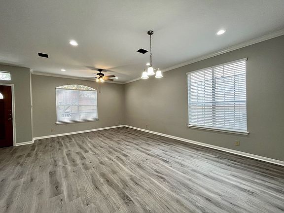 Open floorplanSleek stainless steel appliancesSpacious master bedroomModern kitchenWalk-in closetCeiling fanDouble vanity