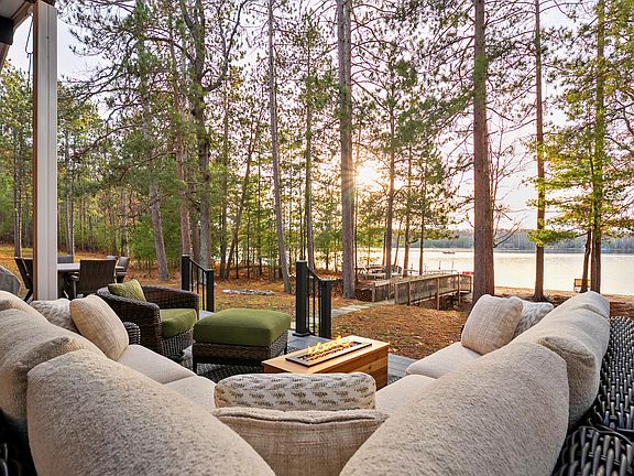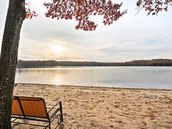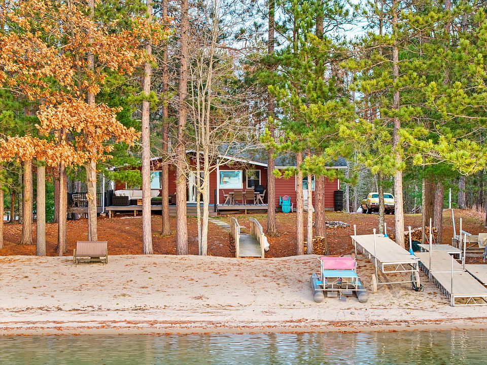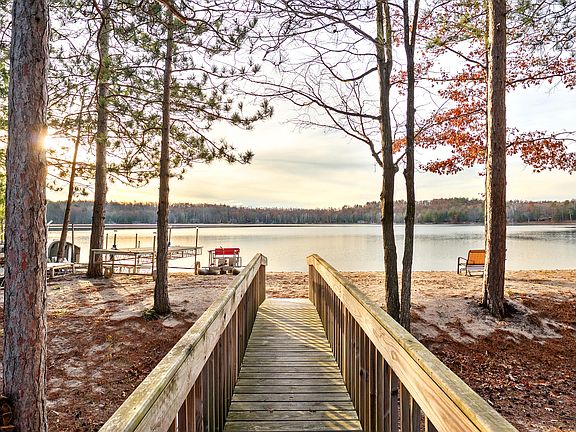 Waterfront living with 75 feet of sandy, private beach frontage! This updated 2 bed, 3 bath home features new vinyl plank flooring, lighting, fresh paint, gorgeous ship lap , and an open-concept kitchen, living, and dining area with vaulted ceilings and lake views. Relax on the newly expanded composite deck with aluminum rails and enjoy sunsets. The dock with bench was new in 2022. Located on a quiet dead-end street for added privacy. Annual $50 association dues include access to tennis/pickleball courts, a Long Lake lot with dock, pavilion, and horseshoes. New central air added in 2024, new water softener in 2024, new exterior doors, new range and natural-gas stove all in 2025. Ess Lake is 114 acres, all-sport with no wake after 7:30. It is crystal clear with a hard, sandy bottom.