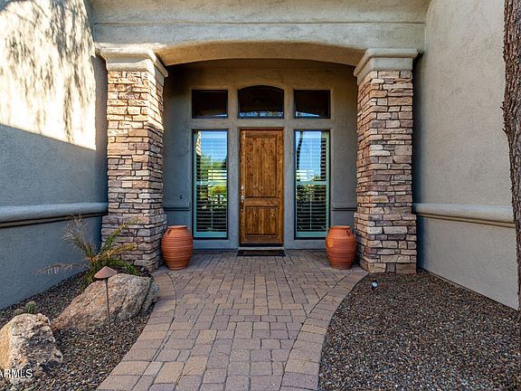 Welcome to this beautifully appointed residence in the 55+ Tonto Verde Community! Featuring a large desert front yard, 2.5-car garage, paver driveway, & an inviting courtyard entry accented with stone details. Inside, the home boasts an open layout with high ceilings, surround sound speakers, plantation shutters, & layered crown moulding that add elegance to every room. The living area offers a cozy retreat with soft carpet & a classic gas fireplace. Immaculate kitchen showcases granite counters, wood cabinetry, a stylish backsplash, SS Wolf oven, microwave, & cooktop, sub-zero refrig, Asco dishwasher, composite sink with Kohler faucet & wine cooler. Breakfast bar perfect for casual dining. & the dining room for formal dining. A convenient powder room completes the main living spaces! Bright main retreat has a double-door entrance, tray ceiling, & private spa-inspired ensuite with a floor-to-ceiling tiled shower, soaking tub, dual sinks, & walk-in closet. The laundry room is equally functional with built-in cabinets & a sink! The house has 8 ft. solid wood doors throughout, lighted custom mirrors, crown molding, skylights, new wood like garage door, epoxed garage floor, exterior recently painted, flat roof re-coated, irrigation system replace, H2O water filtration system, Lynx BBQ island, built-in firepit, Marbella patio pavers with low wall. Enjoy the desert-style backyard boasting covered patio, built-in BBQ, & fire pit. The best of desert living! Hurry! THE SELLER HAS A TONTO VERDE GOLF MEMBERSHIPTHAT HE WOULD LIKE THE BUYER TO BUY WITH HIS HOUSE AND WILL GIVE THEM HIS GOLF CART IF THEY BUY HIS MEMBERSHIP! THANKS