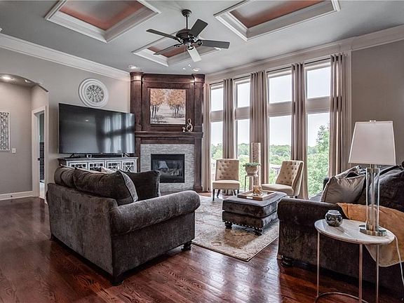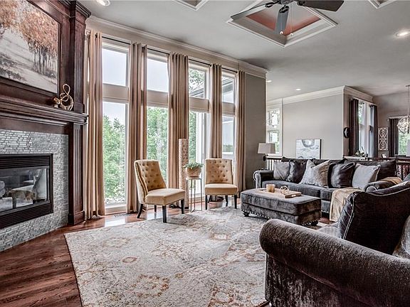DID SOMEONE SAY VIEW?!-This Gorgeous 1 1/2 Story is located on a cul-de-sac and the view out of the Great Room-Breakfast Room & Solarium are Beautiful! Curb appeal from every direction-Mature Landscaping-Lovely in-set tile feature greets you at the front entry-Then gleaming hardwoods lead you into the formal dining room & Open floor plan leading to the Great Room w/fireplace-Soaring Ceilings w/lighted coffered ceiling-and a wall of windows- Check out the solarium w/even more floor to ceiling windows and a newly tiled gleaming floor-plantation shutters-Then pass on by the breakfast room w/entrance to private deck on your way to the Stunning Kitchen! Granite counter tops-(Recently added) Breath taking back splash-Cabinetry has just the right amount of glass display and enclosed cabinets as well as pantry for even more storage! And a large island for even more room for your favorite chef to spread out! Laundry room w/sink & built ins-Master Bedroom is roomy w/a Lovely Tray Ceiling-Plantation Shutters-Master Bath has Large soaking tub and huge walk in shower-And look at all the storage space in the walk in closet! Main floor features a secondary bedroom w/2 closets. Lower level has 2 more Huge bedrooms-exercise room-and a Beautiful Family Room w/Fireplace-Walk Behind Wet bar-and a perfect area for a game table as well! This lower level opens up to a newly added patio area w/ privacy but a Lovely view of the large corner lot! SO MANY EXTRAS AND UPDATES in this Well Taken Care of Home! And all just a short walk to a 9 hole golf course! Falcon Valley is easy access to highways, schools, shopping, restaurants and so much Lenexa has to offer!!