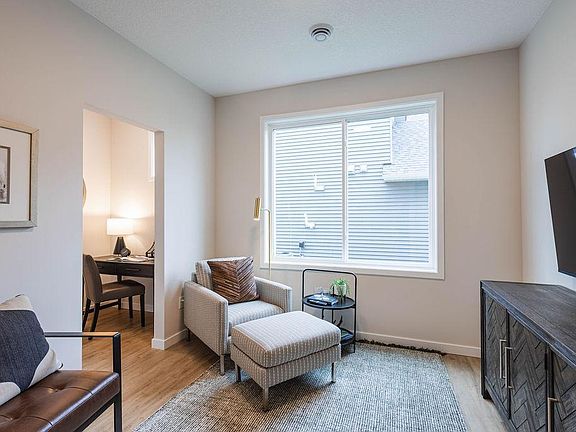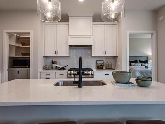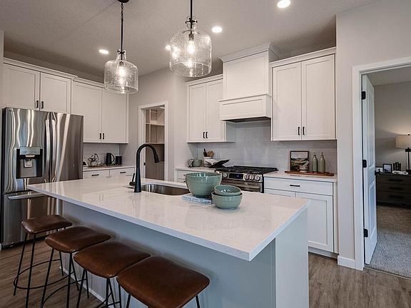 Welcome to this stunning Robert Thomas Homes Parade of Homes model, showcasing quality craftsmanship and thoughtful design throughout. The main level offers a luxurious primary suite with double sinks, ceramic tile shower, and a spacious linen closet, plus a second bedroom for added convenience. A versatile flex room with a pocket office makes working from home a breeze.