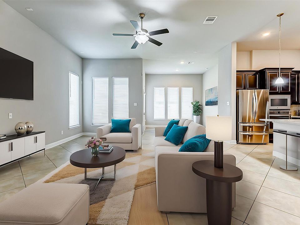This impeccably maintained residence offers abundant living space with modern elegance throughout. Enter into an open-concept living area that flows seamlessly into the gourmet kitchen, complete with sleek stainless steel appliances and stunning granite countertops.
