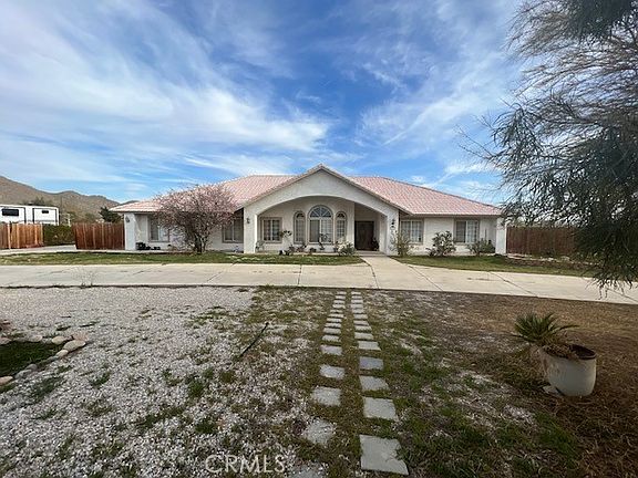 Beautiful Apple Valley ranch home!!!!!! is awaiting your imagination! A circular driveway and manicured lawns welcome you home. The step down living room is spacious. Corner brick fireplace and mantle as well as pot shelves throughout. Great for family gatherings, the large, open kitchen boasts a breakfast bar, double ovens, 5 burner cooktop and a built in desk. Retreat to your master suite that is pure luxury with a fireplace, walk in closet, soaker jetted tub and separate shower. 2 additional bedrooms and a full bath can be found on both wings of the house. A 2 car garage is directly accessible thru the main house and there is parking for your RV!