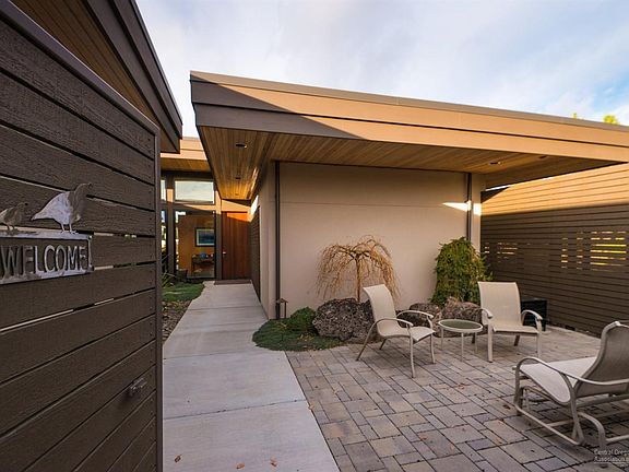 One-of-a-kind architectural gem in highly sought after Shevlin Commons. Single-level living with unobstructed views from the Sister's to Jefferson. Overlooks common area and Shevlin park. Solar panel approved and ready, super-efficient with green features throughout, incredible interior courtyard, triple-car garage with shop area. Fully landscaped with drought tolerants. Outdoor dining with built in BBQ on expansive patio.