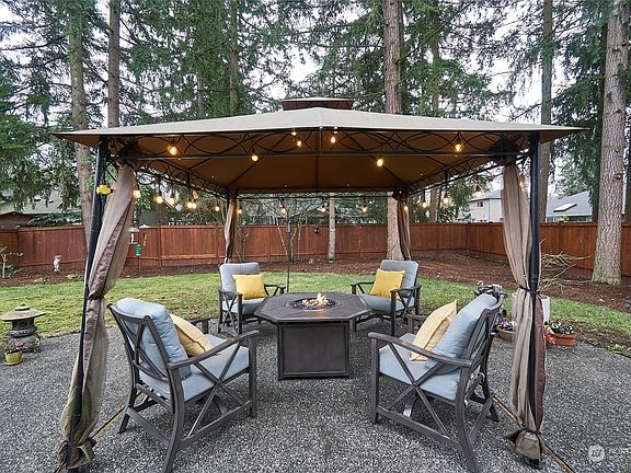 Well maintained home in the lovely Lancaster Park neighborhood of Covington. Unique large lots offer privacy & mature landscaping wrapping you in nature. Oak floor entry welcomes you into the living & dining room with a unique double trayed ceiling. Updated kitchen w/ quartz counters, hardwood floors, new SS appliances & breakfast nook. Large Primary Suite with full bath & double vanity, plus 3 more bedrooms & full bath. Large fully fenced flat backyard perfect for kitchen gardening and furry friends. Spacious patio already set up for entertaining with a lighted gazebo, furniture & gas firepit. Side yard w/ a huge shed. Extra pull down storage in garage. New water heater, & interior paint. Cedar siding. Close to medical, shopping, & Hwy 18.