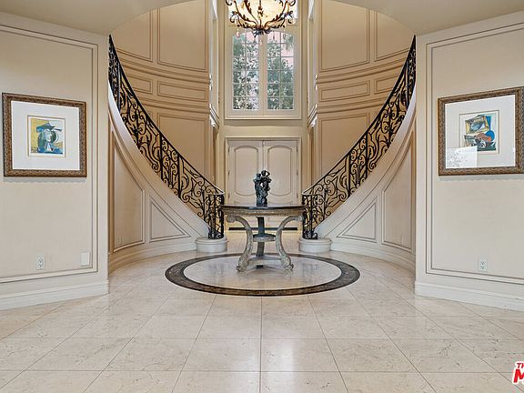 Located in the exclusive, 24 hour guard-gated community of Mulholland Park, this magnificent, double lot, 6-bedroom, 8-bath estate offers unparalleled luxury and privacy on an exceptional double flag lot spanning over 2.67-acres w/ expansive views! Highly desirable Plan 6 model. 100 ft Setback private driveway, oversized, & dual entry two car garages. Hand carved crown mouldings, attention to detail wainscotting, and so much more. Situated on a quiet cul-de-sac street, This expansive residence spans over 6000 square feet and features breathtaking panoramic vistas of the San Fernando Valley and The Mulholland Country Club. Key features are Floor-to-ceiling windows and multiple balconies capture panoramic views of the verdant golf course and the valley below. All creating a stunning backdrop for both daily living and special occasions. Grand-scale entertaining: The dual startcase formal entry opens to a dramatic great room with soaring ceilings, a formal dining area, and a spacious, modern kitchen with granite countertops and high-end appliances. All custom made dual wrought iron winding spiral staircase leads to all upper bedrooms, luxurious master retreat, complete with a cozy fireplace, his-and-hers private water closets, expansive walk-in closets, and private balconies overlooking the pool and valley. Generous living spaces: In addition to the primary suite, the home includes four large bedroom suites, all en-suite full baths with their own private balconies, a guest/maids' quarters, a private office, and a state-of-the-art movie theater. Park-like grounds: The home is set on a massive all usable lot providing a serene and private outdoor oasis. The grounds feature a pool, spa, entertaining areas, room for a sports court area, and an expansive lawn perfect for relaxing and enjoying the scenery. This property is a very unique and special "hand picked" lot, all oversized for large parties and entertaining with elegance and privacy. Enjoy this offering as a truly magnificent living experience in one of Tarzana's most prestigious communities. A must see of a lot and prime location!