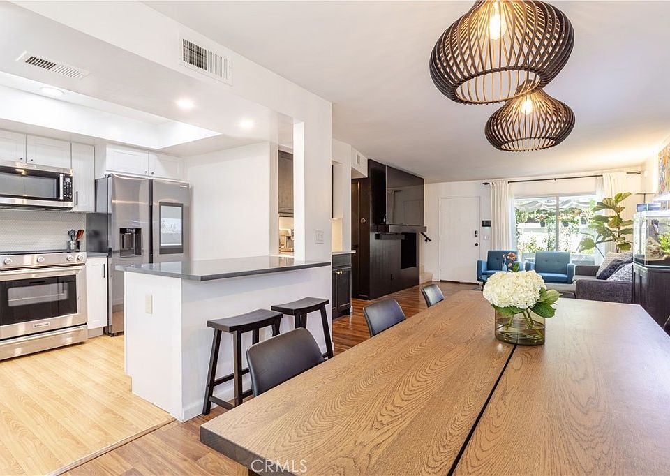 Welcome to this exceptional townhouse in Mariposa Gardens, an exclusive gated community of 19 townhomes located in the heart of the vibrant San Fernando Valley. Experience a spacious home boasting 1,133 square feet of living space, 2 bedrooms and 2.5 bathrooms, with the perfect blend of modern elegance and inviting warmth! Delight in the bright and open floor plan on the main level, complete with a spacious living room, a cozy gas fireplace and wooden mantel, a wet bar with Quartz countertops and full backsplash with a built-in beverage fridge, a beautifully remodeled powder room for your guests, and an adjacent ample size dining area. The newly remodeled kitchen boasts stainless steel appliances, new shaker cabinetry, Quartz countertops, full tiled backsplash, recessed lighting, and a handy breakfast bar, making cooking an absolute joy! Upstairs, you will find two generously sized bedrooms, with en-suite bathrooms, and a laundry area. The primary bedroom features a walk-in closet and upgraded bathroom adding elegance and comfort. The home features laminated floors throughout the main level and carpeting on the second floor. The attached two-car garage offers direct access to the home, with a bonus room just off the garage for recreation or leisure. Step outside your front door into your own private retreat; featuring an outdoor pergola with adjustable sunshades complete with outdoor furniture, a charming stone fountain, lush plants, and delicious fruit trees; this space is perfect for relaxing or entertaining. The complex features a charming common area with a gazebo and gas grill providing an additional space to unwind or gather with friends. Conveniently located near restaurants and shops, this townhome offers both luxury and practicality. Hurry, this one won't last!
