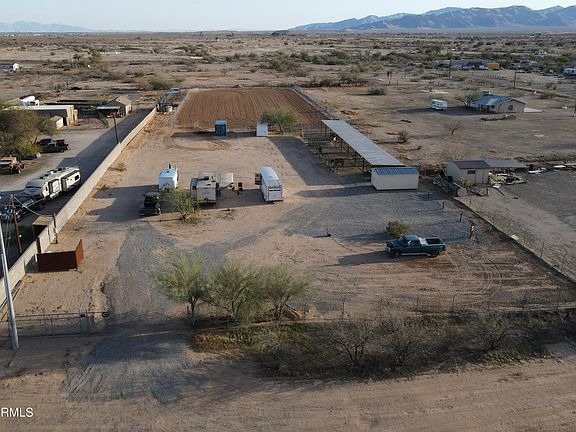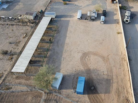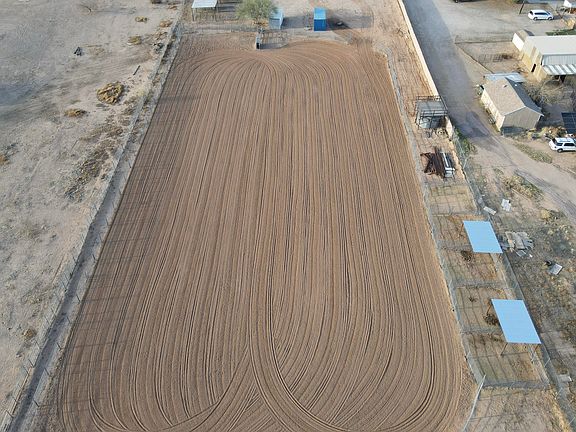 Ready to rope in Wittmann. this place checks all the boxes for winter horse enthusiasts. Highly desirable Wittmann horse setup featuring power, water & 5 RV hookups (1-50 amp, 4-30 amp). Fully chain-link fenced with barbed wire—close the gate & relax! Includes 7 covered pens w/ hay storage, plus 4 covered & 4 open pens along the arena. 175'x250' arena w/ return alley & chute; plenty of room for more pens, $10K spent on rock picker for premium footing. 8'x24' insulated shed w/ power, 2 Conex storage units, 1500+ gal water tank w/ gas pump. Water line to SE corner. Great access to Hwy 60, close to Surprise & 3 arenas!