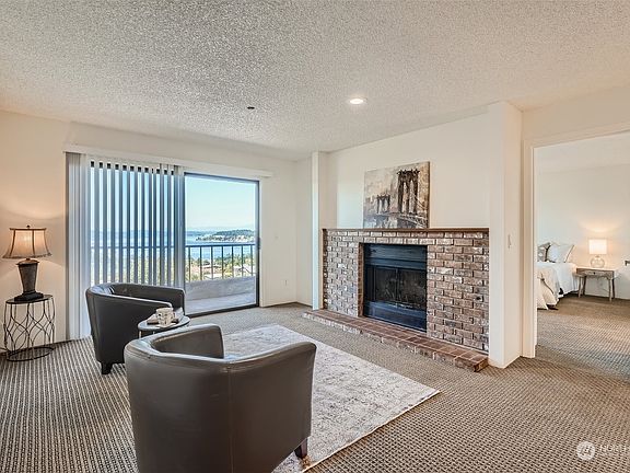 Immerse yourself in the breathtaking 180° Puget Sound views from this 2 bedroom / 1.75 bath condo. Experience daily delights of mesmerizing South West sunsets and serene water view living. This expansive residence boasts a spacious living room with access to a sprawling covered patio, perfect for year-round enjoyment of the stunning surroundings. The well-appointed kitchen seamlessly flows into a separate dining area. Two assigned parking spaces, one in the secured parking garage and one near the security gate, storage and convenient elevator access. Situated near Hwy 16, Chambers Bay Golf Course, Titlow Beach, and various shopping options, this condo is your gateway to unparalleled comfort and convenience!