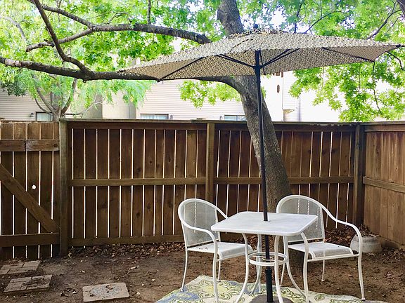 Fantastic 2 bed 1.5 bath Woodstock Condo! Features include wood floors and tile floors throughout, wood burning fireplace, updated stainless steel appliances and fixtures, large bedrooms, large closets and More! Enjoy the beautifully improved fenced yard, pool, hot tub and convenience to everything. Refrigerator, will remain. Brand new garbage disposal and dishwasher. Recently painted downstairs. Balcony off of one upstairs bedroom. Half bath downstairs. Alarm system. Nice big trees in back yard. Very convenient location. Short walking distance to Wolf Pen Creek, Right across the street from The Tap and near popular study and meeting areas like Sweet Eugene’s. Short drive to campus. Pool onsite and lots of parking.
