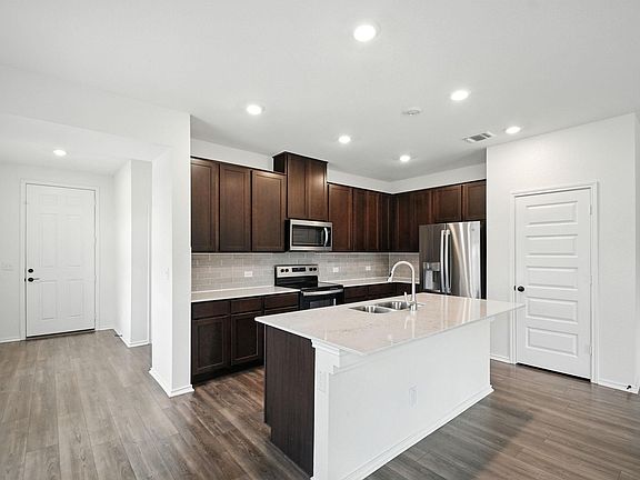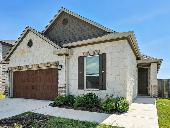 Built in 2023, this beautiful one-story home in Bastrop's Piney Creek Bend neighborhood offers 4 bedrooms, 2 full baths, and an open, functional floor plan designed for modern living. The spacious living area flows seamlessly into the dining space and kitchen, which features a breakfast bar, Energy-Star appliances, and plenty of counter and cabinet space. Durable vinyl flooring in the main areas pairs with plush carpet in the bedrooms for both style and comfort. The primary suite is privately located on the main level and includes a walk-in closet and an ensuite bath. Three additional bedrooms provide space for family, guests, or a home office. Situated on a generous corner lot, the home's exterior boasts attractive brick and stone construction, a fully fenced backyard, and a covered patio perfect for outdoor relaxing or entertaining. The attached two-car garage offers convenience and storage. Enjoy the benefits of a welcoming community with a playground and park nearby, while being just minutes from historic downtown Bastrop, shopping, dining, and the Colorado River. This property is zoned to Bastrop ISD schools, including Mina Elementary, and offers easy access to Hwy 71 for commuting to Austin and surrounding areas. This rental combines the charm of a newer home with the convenience of a prime location, making it the perfect place to settle in and enjoy all that Bastrop has to offer.