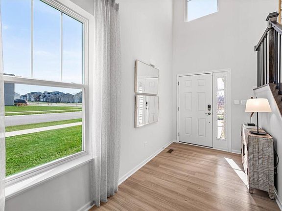 The Courtney Duplex features 3 BDRMS and 2.5 BATH two story model.Spacious kitchen w/ GE Kitchen appliances INCLUDED. 9' ceilings on the first floor w/ UPGRADED Vinyl flooring in Great room 42'' white kitchen cabinets and QUARTZ countertops. Back yard has view of preserves.UPGRADED DLX SHOWER in master suite. All homes include LED surface mount lighting, modern two-panel doors with white colunist trim. A designated Wi-Fi guaranteed keeps you connected and will be built with superior Smart Home automation. Offering the latest in connectivity features, homes will have a Ring Video Doorbell Pro, Ring Alarm Security kit,. Located in Crown Point's newest community, Heather Ridge conveniently located off of I-65, Crown Point school district and quick access to local shopping and restaurants. Short walk to proposed park. Lawn care, snow removal, roof and siding included with monthly HOA. Stock photos are being used and may vary from home.