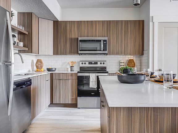 - Exterior features: , Designer Faucets and Tile Backsplash, Door-to-Door Trash Valet Service, Dwelo Smart Home Technology, EV Charging Stations, Expansive 9-13ft ceilings, High-speed Internet Ready, Housekeeping, Modern Soft-Close Cabinetry, On-Site Management, Online Leasing and Application Process, Online Rent Payments and Service Requests, Open-Concept Living Areas, Oversized Windows, Package Receiving, Pet Friendly*, Pet Park, Programable Thermostats and Lights, Quartz Countertops, Spacious One-, Two-, and Three Bedroom Apartments, Spruce *, Stainless-Steel Appliances, Two Fire pits, Two-Tone paint, USB Wall Outlets, Wood-Style Flooring, Year-round Resident Barbecue's