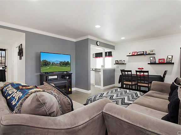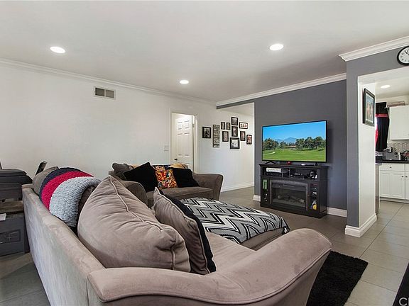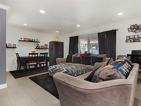 This is a very cozy 1100 sq. ft., 3 large bedrooms, 2 bathrooms home, nestled on a premium lot at the end of a Cul-De-Sac. The living room is nicely enhanced with recessed lighting and crown molding. The updated kitchen features a stainless steel appliance package and newer contemporary white cabinetry. This home offers a bonus room (not factored into the square footage) perfect for enhanced entertaining. The spacious backyard has a private seating area and ample flex space for a children's play area or a quaint pool. The finished garage can easily accommodate 2 cars. The location is fantastic whereas it is centrally located to schools, shopping, restaurants and transportation options.