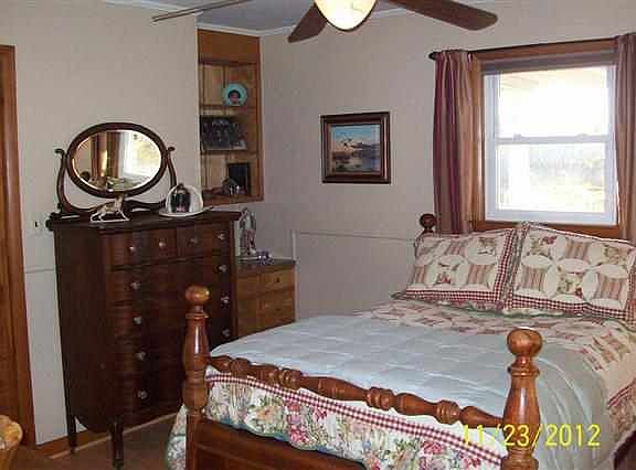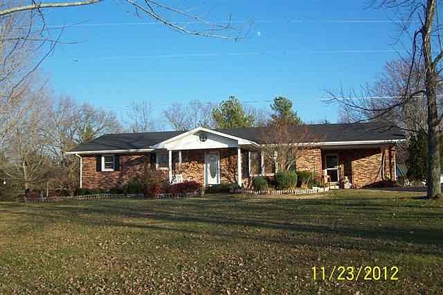 Charming 3RB/2BA, 2000sq.ft+ brick home, 1 car attached carport, 20x40 detached 2 car garage/workshop situated on .8 acres +/- which is home to many fruit & ornamental trees. This well maintained home features corian countertops in the large eat-in-kitchen and stainless appliances, family room w/fireplace/gas logs, extra wide hallway for easy access to nice size LR and bedrooms. Enjoy yourself on the 15x20 deck which has a retractable awning. Minutes away from Kentucky Lake. Motivated Seller!!