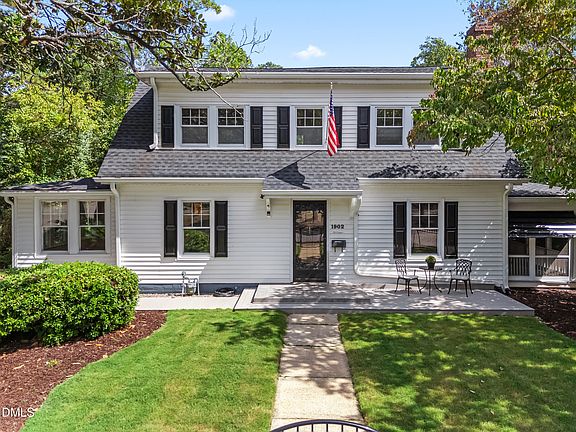 Beautifully updated 4-bedroom, 2.5-bathroom residence nestled in the sought-after Five Points area of Raleigh. This home boasts charming hardwood floors throughout, maintaining its original character. The main level highlights a breathtaking kitchen featuring a stylish tile backsplash, quartz countertops and white cabinets that reflect natural light, along with modern stainless steel appliances and walk-in pantry. You'll find a spacious dining room, a cozy living room and a primary suite complete with a walk-in closet, fireplace, and screened-in porch. The upper level offers three additional spacious bedrooms and a beautifully renovated bathroom. Enjoy outdoor living on the inviting front porch or the paver patio in the private backyard. An unfinished basement adds potential for further customization.