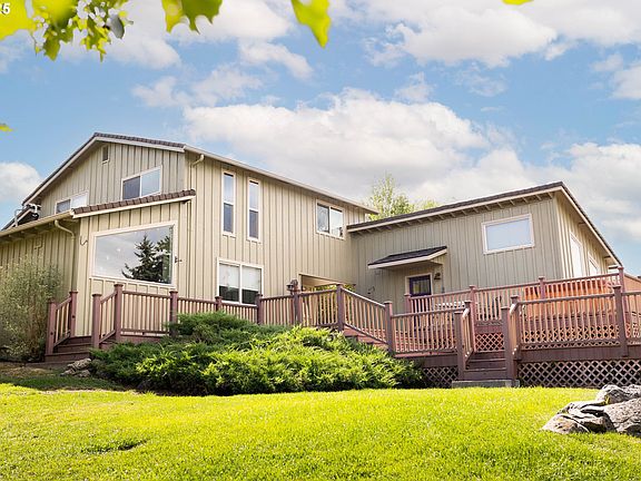 Outstanding property in Highland Hills location. This home is amazing with quality remodel spaces and very artful ideas. The owners have added a garden shed, substantial area multi concrete drives and multiple parking areas on both levels with entrances at each level of the home and guest suite. Custom touches include tiled showers, window seats for lounging in the primary suite, wood floors and iron railings made by a local artisan. Efficient heat systems, Rinnai on demand hot water all upgraded and ready for you to enjoy your new life. Custom kitchen by Teri with a butler's pantry. The home has 2838 sf, m/l on 2 floors. The detached single car garage is 336 sf, m/l with a second-floor full guest suite. The guest suite is a quality finished with wood custom railings to a loft area for your use. Fully prepared to welcome company or a 4th bedroom area. The carport at the main level offers 221 sf, m/l and the concrete parking is at 2 levels for ease of use. 0.42 of an acre size lot. The lot corners have just been marked and the views from this property are amazing from the upper bedrooms, decks, dining room plus the breakfast bar is situated to view out to Mt Emily and our beautiful Grande Ronde area.