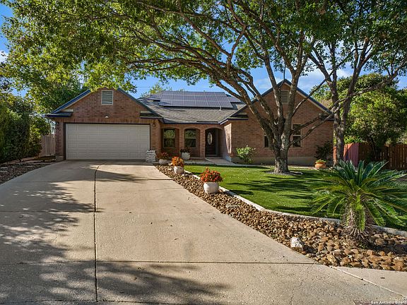 Tucked away at the end of a quiet cul-de-sac, this beautifully maintained one-story brick home offers comfort, efficiency, and privacy. The exterior features four sides of classic brick, roll-down solar shades, an 8-foot rear fence, and no rear neighbors, giving you peace and seclusion in your own backyard retreat. Step inside to find all-tile flooring throughout, perfect for easy maintenance and a modern look. The updated kitchen is a true highlight-featuring quartz countertops, soft-close drawers, roll-out shelving, and newer stainless steel appliances-making cooking and entertaining a joy. Enjoy relaxing evenings on the covered back porch or tending to your low-maintenance landscaping with artificial turf in both the front and back yards. The storage shed provides extra space for tools or hobbies, while solar panels help keep energy costs low. Located in the highly sought-after Northside Independent School District, this home combines thoughtful updates, energy efficiency, and a convenient location-ready for you to move right in!