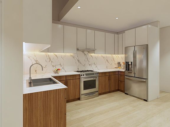 Discover your urban oasis where contemporary living meets comfort and convenience. This newly constructed 2-bedroom, 2-bathroom first-floor condo, offering 1,220 +/- square feet of modern living space, features a spacious floor-plan design with an abundance of natural light, enhancing the inviting atmosphere throughout. Step through the front entrance into a bright and airy living area, featuring 10' ceilings, hardwood floors, and large windows. The space seamlessly connects to a high-end eat-in kitchen, which boasts sleek natural wood cabinetry, quartz countertops, & state-of-the-art stainless steel appliances. For added convenience, a full bathroom with a tub and shower is located just off the kitchen, showcasing a modern vanity with an LED mirror. The first bedroom offers a cozy retreat with closet space, while the Primary bedroom features an en-suite full bathroom with additional closet space. Beyond your private space, enjoy access to a shared rooftop and fenced shared backyard area, perfect for outdoor relaxation. For added convenience, a washer/dryer is included. The home is equipped with a tankless water heater, LED lighting, a SMART doorbell, and a SMART security camera, ensuring modern efficiency and security. This property is ideally located close to major highways, House of Worship, Schools and just minutes from the Journal Square PATH terminal, ensuring a swift and seamless commute to NYC. Experience modern urban living at its finest. Plus, enjoy peace of mind with a 10-year builder’s warranty on this exceptional condo.