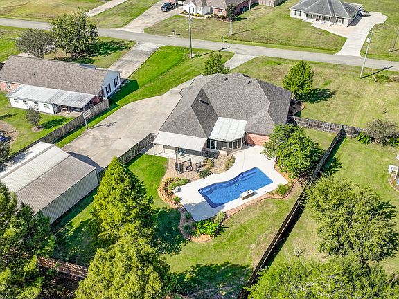 Welcome to this graciously well-kept 3-bedroom + office home, where indoor comfort meets incredible outdoor living! The primary suite is a true standout--offering two full bathrooms and two walk-in closets. That's right--one for each of you! It's a rare and luxurious touch that sets this home apart. Nestled on a beautifully landscaped lot, this property offers a true backyard oasis featuring a sparkling saltwater pool, cozy firepit area, and a convenient outdoor half bath--perfect for entertaining or relaxing in style. For those with big toys or hobbies, you'll love the metal shop with a large lean-to, offering ample space for storage, projects, or recreational gear.The spacious screened-in patio, seamlessly attached to the 2-car garage, creates a fantastic setting for gatherings, rain or shine.Inside, the home continues to impress with an open-concept layout, custom wood cabinetry, granite countertops, and easy-to-maintain stained concrete floors throughout. Whether you're enjoying quiet nights by the fire, poolside weekends, or entertaining friends and family, this home delivers comfort, function, and style at every turn. Roof and gutters in 2024. Don't miss your chance to own this one-of-a-kind retreat!