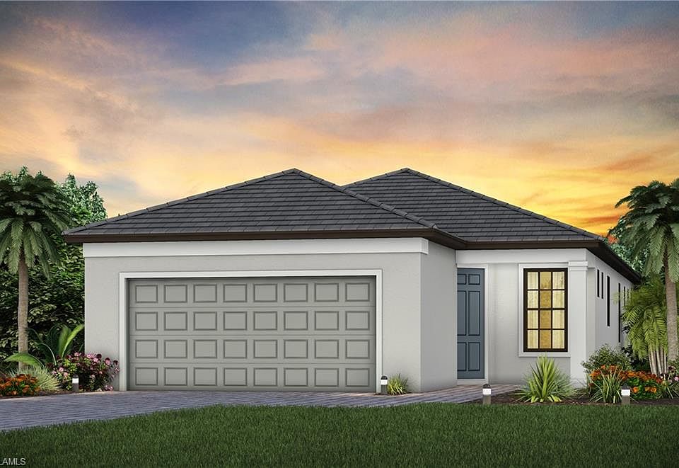 Move into Terreno May 2023. This Contour home features an extended covered lanai, porcelain tile floors in main living, quartz countertops throughout, stainless steel appliances, utility sink at garage, enclosed flex room & more! Your dream home and lifestyle await you at Terreno in Naples, Florida. With over 680 luxurious new construction one and two-story single-family homesites and robust resort lifestyle amenities, you’ll love to come home to superb views and new inspired homes designed for the way you live. Homes served with a Fiber network deliver Gigabit Internet speeds. Photos are for illustration purposes only, options may vary.