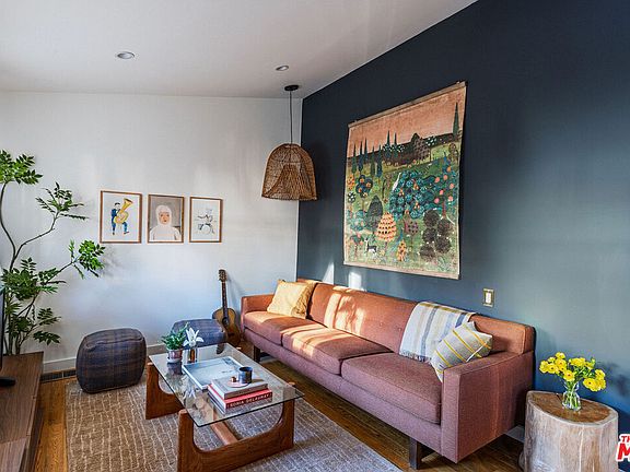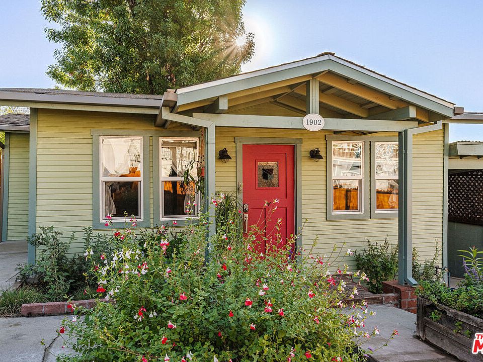 Highland Park Hills sanctuary hidden in plain sight. This one-of-a-kind gated property features a 2-bed/1-bath main house, two indoor/outdoor entertaining spaces, and a magical terraced yard with multiple seating areas and a private studio. A new wood-and-steel privacy gate opens to lush garden beds overflowing with flowers and herbs, leading to a cozy 1925 bungalow thoughtfully updated with a new kitchen and bath. Out back, enjoy an artful retreat with a screened-in lanai, covered pergola, and a screened in room with mural by LA artist Saelee Oh. The terraced garden with citrus trees, vibrant flowers, and layered greenery offers serene spaces for relaxing or hosting. At the bottom of the garden, a hand-painted patio leads to the secluded "Casita" studio with a half bath ideal for guests or a private workspace. A bonus basement adds flexible storage. Perfectly located between Highland Park and Eagle Rock, minutes to York Blvd's shops, cafes, and nightlife and all that Eagle Rock has to offer. A rare Highland Park treasure.